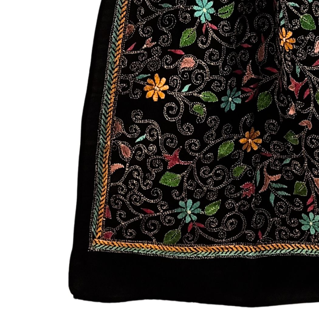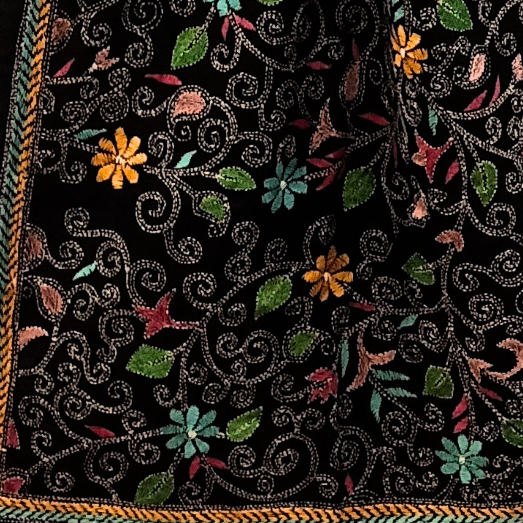 Black Colour Base With Multicolour Floral Kantha Stitched Stole