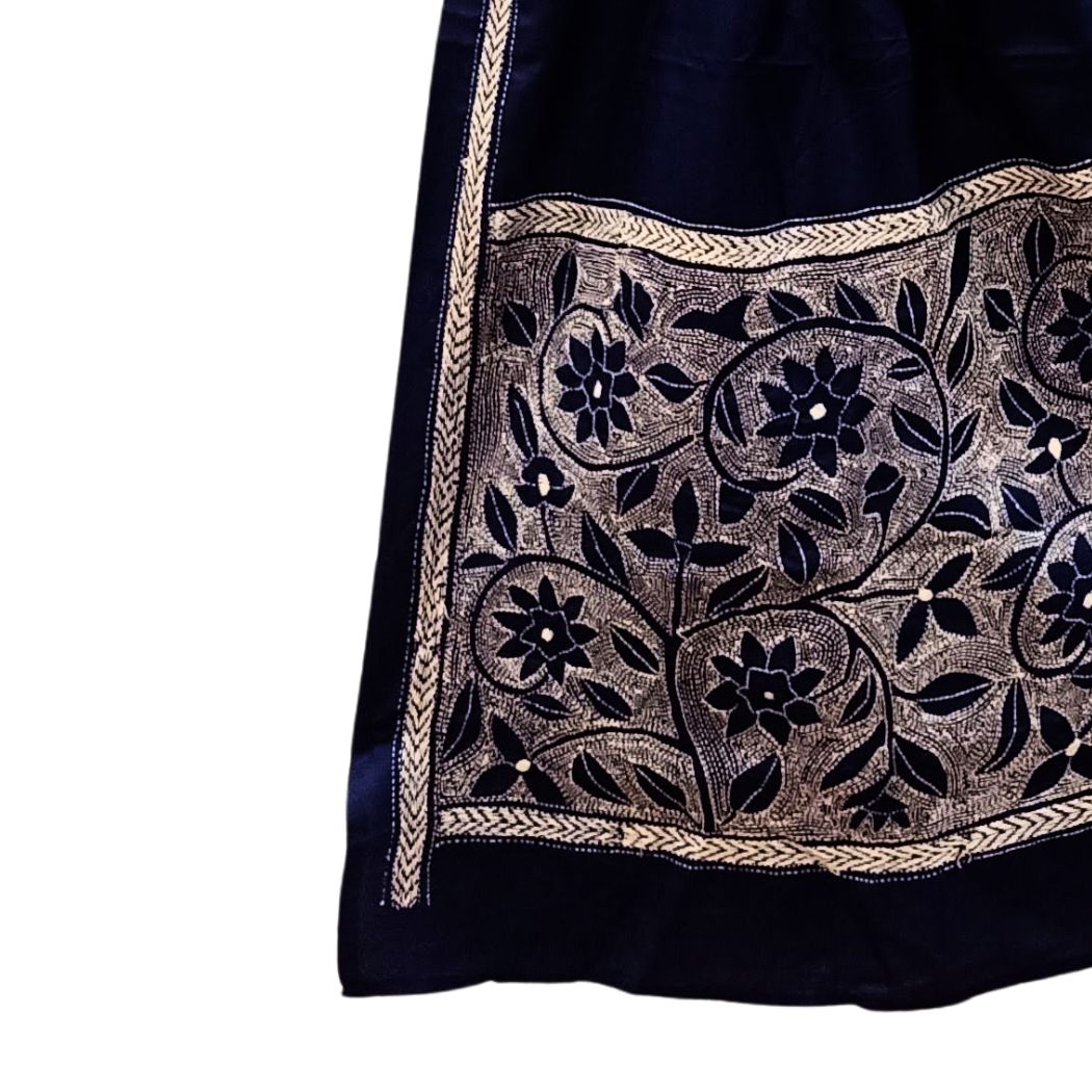 • Load image into Gallery viewer, Navy Blue Colour Base Kantha Stitched Stole