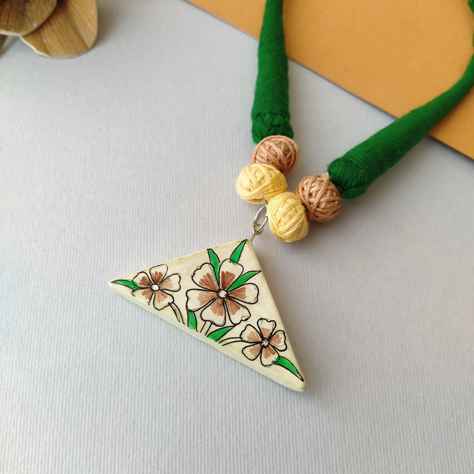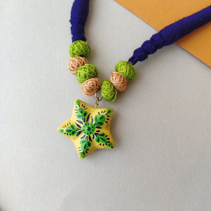 Papier Mache Jewellery Set Earring And Pendant- Yellow