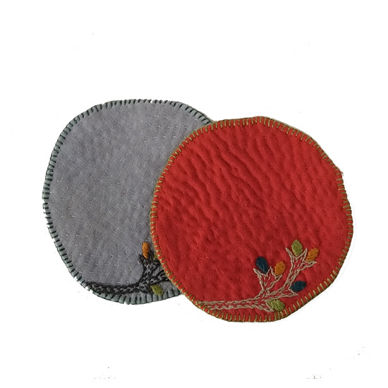 Tree Design Hand Embroidered Coaster With Pouch Set of 2
