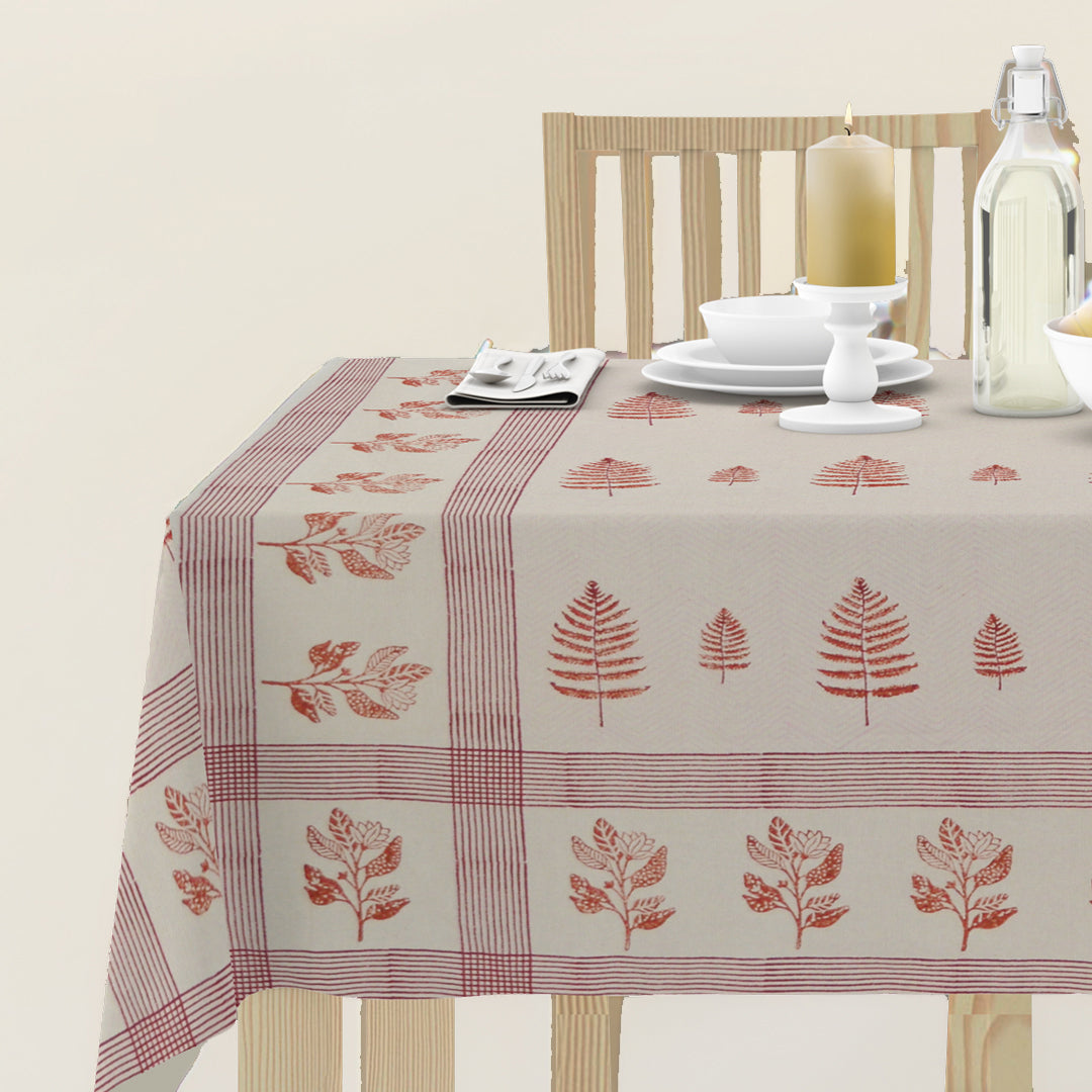 Enrich your dining table with ethnically big leaves hand block printed square table cloth flaunting with a fascinating border.This tablecloth is a perfect fit and a necessary essential to compliment the decor of your dining ensemble.