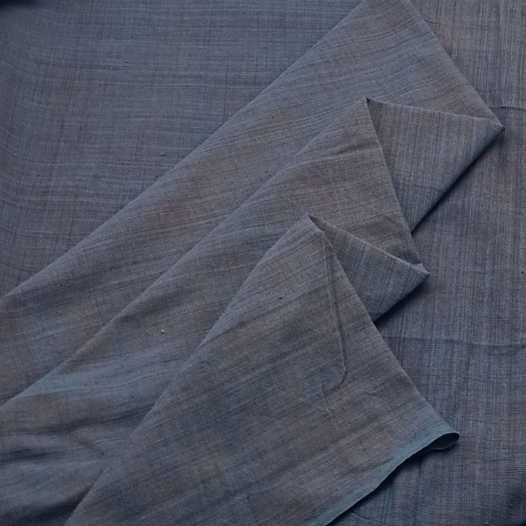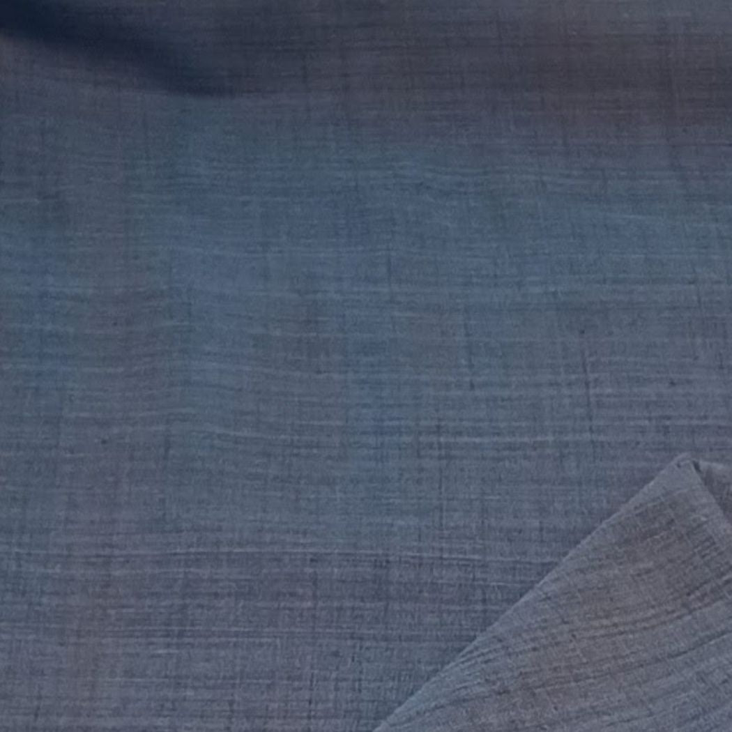 This fabric features a serene slate blue tone with a soft, airy texture that drapes beautifully. Lightweight and breathable, it has a gentle natural weave that gives it an understated, organic charm. The smooth finish and fluid fall make it ideal for creating comfortable yet refined silhouettes. Perfect for both everyday wear and minimalistic statement pieces, this fabric brings a calm, timeless aesthetic to any design.
