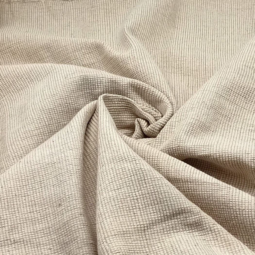 This fabric features a subtle, textured weave in a soothing natural beige tone, celebrating the beauty of simplicity and craftsmanship. Handwoven using traditional techniques, it has a soft yet structured feel, making it  durable,.The understated texture adds quiet elegance, perfect for those who appreciate minimal, earthy aesthetics.Ideal for, home furnishings, and craft projects, this fabric works beautifully for cushion covers, table linen, and upholstery accents. Its neutral colour pairs effortlessly with both bold and muted palettes.